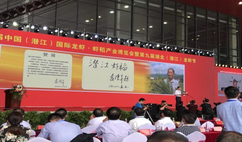 中访网—荆楚访谈网讯(记者 凡丹,编辑 秋阳)由中国水产流通与加工协会、中国粮油学会、中国渔业协会、潜江市人民政府共同主办第二届中国(潜江)国际龙虾·虾稻产业博览会暨第九届湖北(潜江)龙虾节于18日上午9:10时,在潜江龙虾科普教育中心(龙展馆)拉开帷幕。省人大常委会副主任胡志强、省政协副主席彭军、农业农村部原常务副部长尹成杰、农业农村部渔业渔政管理局副巡视员江开勇、中国科学院院士桂建芳等领导出席了此次开幕仪式,中国工程院院士、首届国家最高科学技术奖得主、杂交水稻之父袁隆平发来贺信,对本届潜江龙虾·虾稻产业博览会成功开幕表示祝贺,对潜江加快优质稻品推广,继续做强做大虾-稻产业寄予厚望。